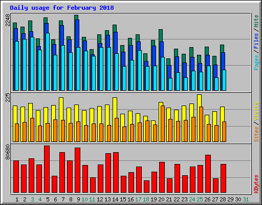 | 日 | Hits | Files | Pages | Visits | Sites | KBytes | ||||||