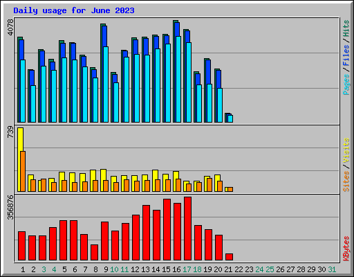 | 日 | Hits | Files | Pages | Visits | Sites | KBytes | ||||||